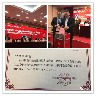 13、2019年6月29日,公司董事长叶忠兴作为中国农产品经纪人协会第二届理事会常务理事赴北京参加三届一次理事会,并现场当选为中国农产品经纪人协会三届理事会副会长,任期五年。